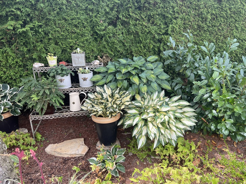 - Schattenbeete mit Rhododendren, Farnen und Funkien wollen entdeckt werden.