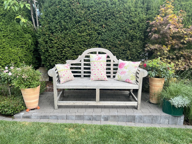 - Ein Sitzplatz unter einer Kletterrose