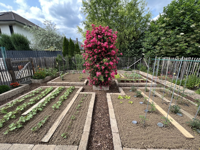 - Gemüsegarten mit selbst gebautem Hochbeet