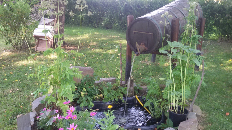 - Ein kleiner Teich mit plätscherndem Wasserlauf