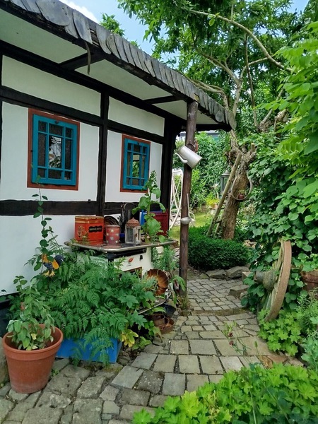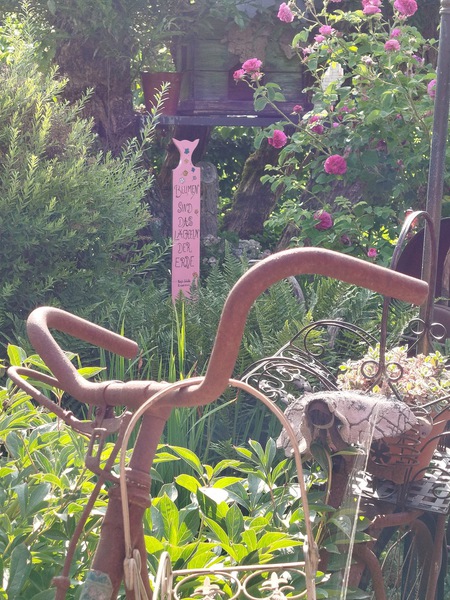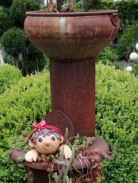 Ein kleiner Garten, im Mittelpunkt des Dorfes, lädt ein auf eine Entdeckungstour. Verwunschen hinter einer Hainbuchenhecke erwartet Sie ein liebevoll gestalteter Garten, in dem alte Dinge weiterleben dürfen.