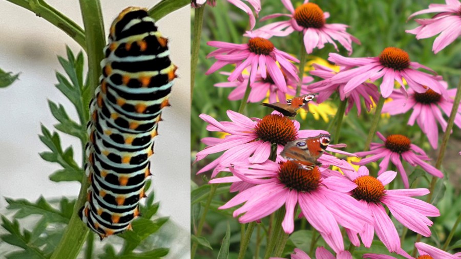 - Insekten, Schmetterlinge und Vögel finden in den Staudenbeeten mit vielen unterschiedlichen Pflanzen und Sträuchern