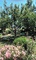 mit alten Bäumen, blühenden Büschen und Stauden,